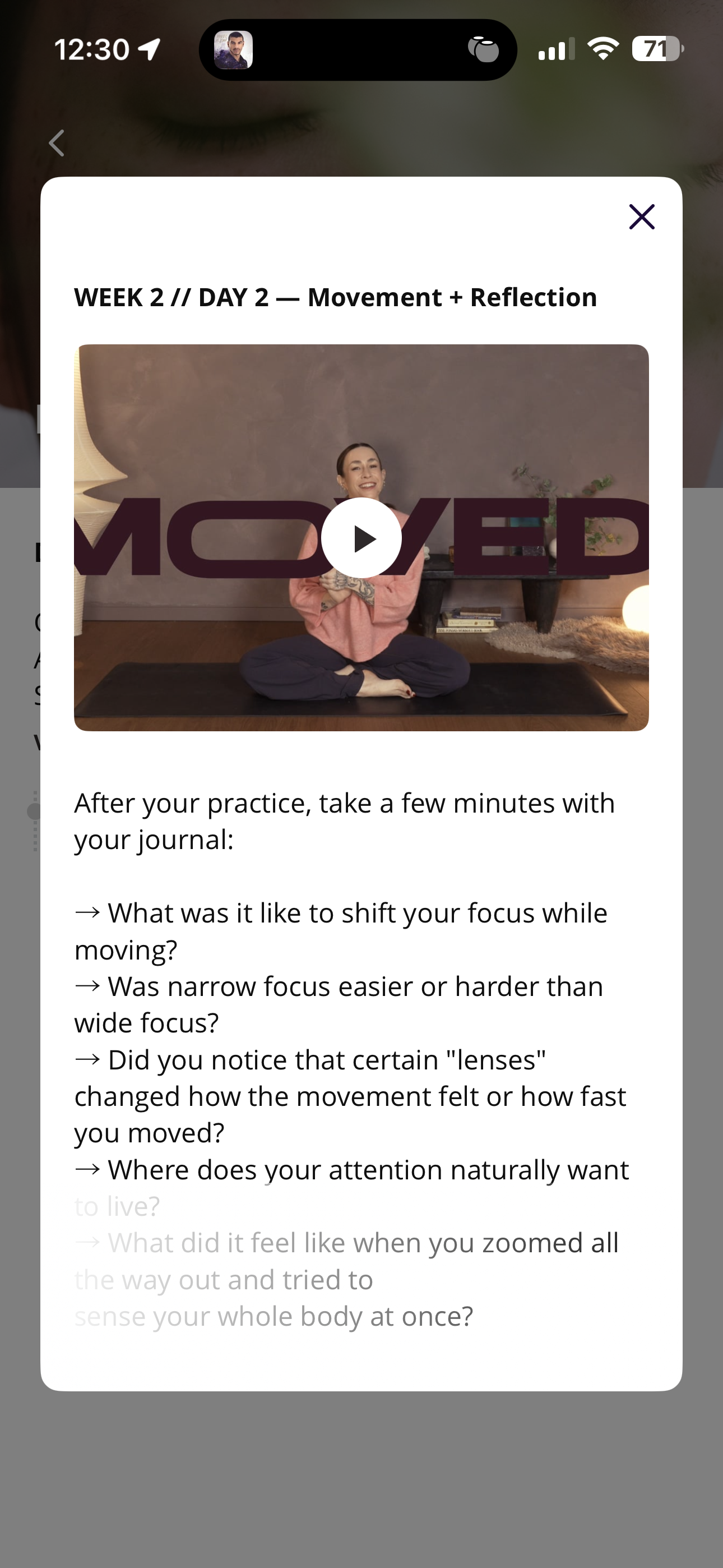 The program itself is self-paced and lives in the Moved. app, but you're always welcome to reach out through the app's direct messaging, share your reflections, or connect with other members. The reflection prompts are designed to be journaled privately, but there's nothing stopping you from sharing them if you want to. Sometimes the most powerful part of a practice like this is knowing other people are in it with you.